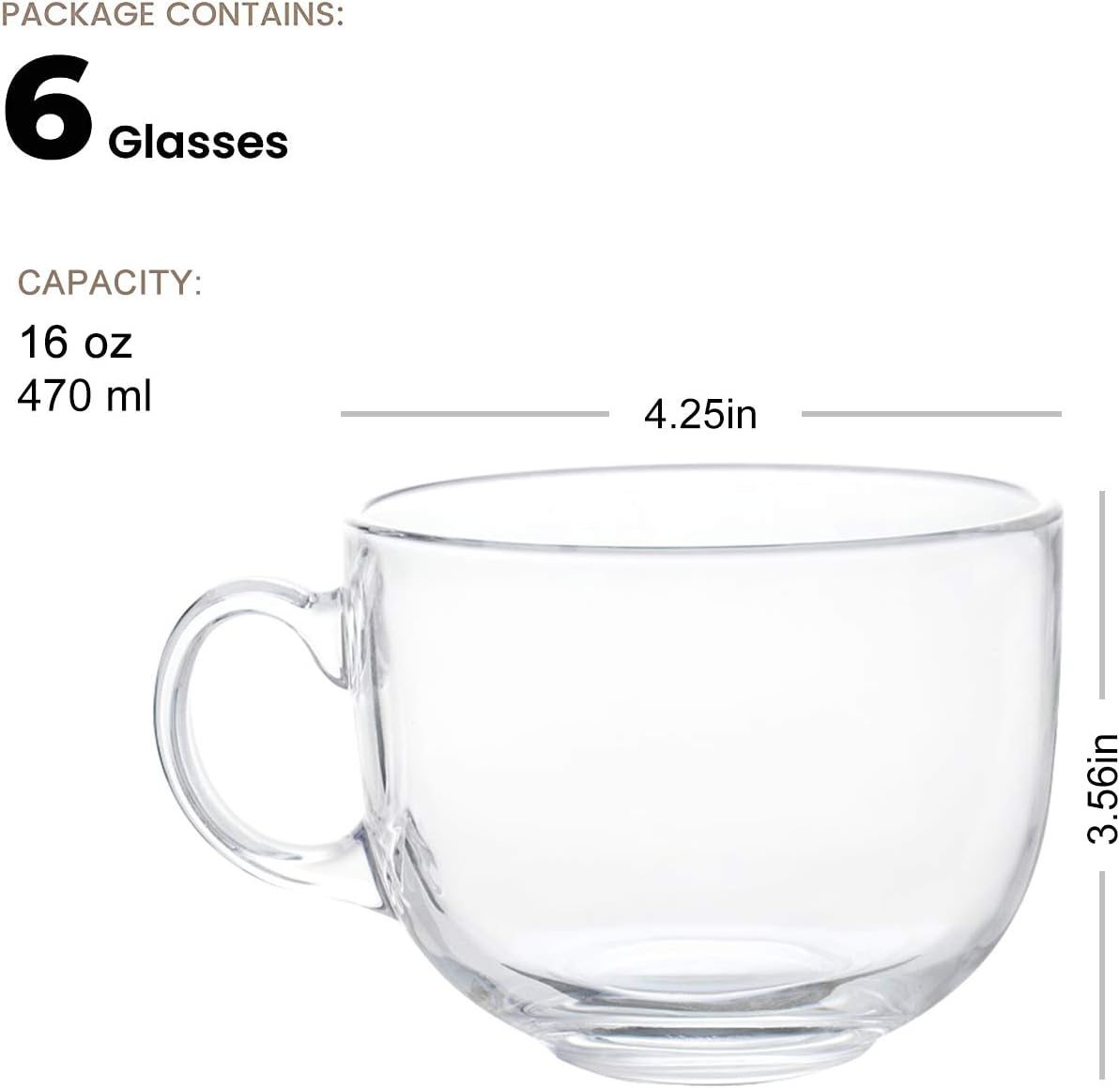 Canecas Jumbo de Vidro de 16oz com Alça para Café, Chá, Sopa, Copo Transparente para Beber, Conjunto de 6