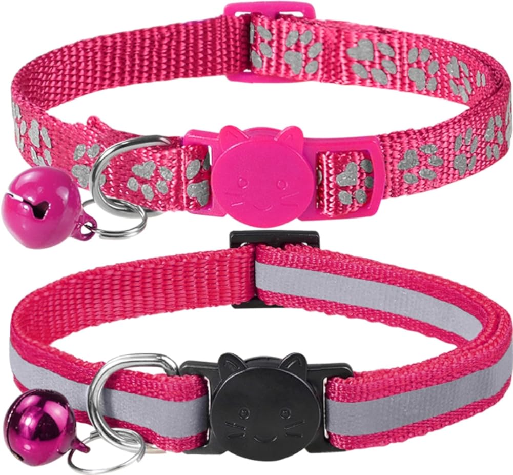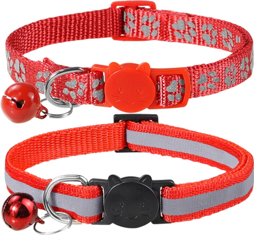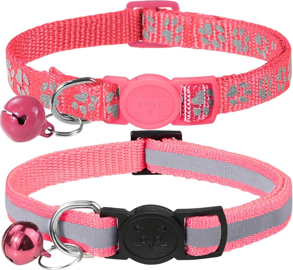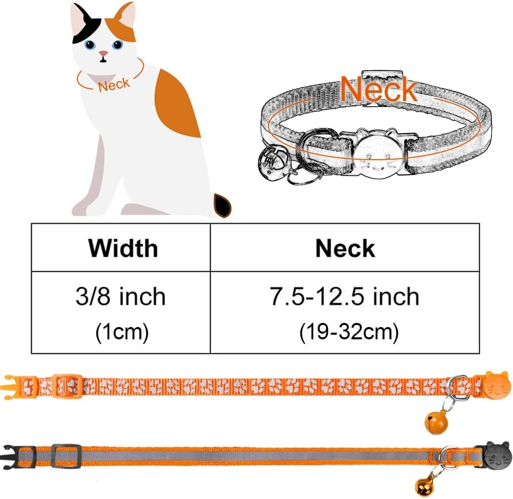 Pacote com 2 coleiras refletivas para gatos, com sino, coleira ajustável para gatinhos, de 7,5 a 12,5 polegadas