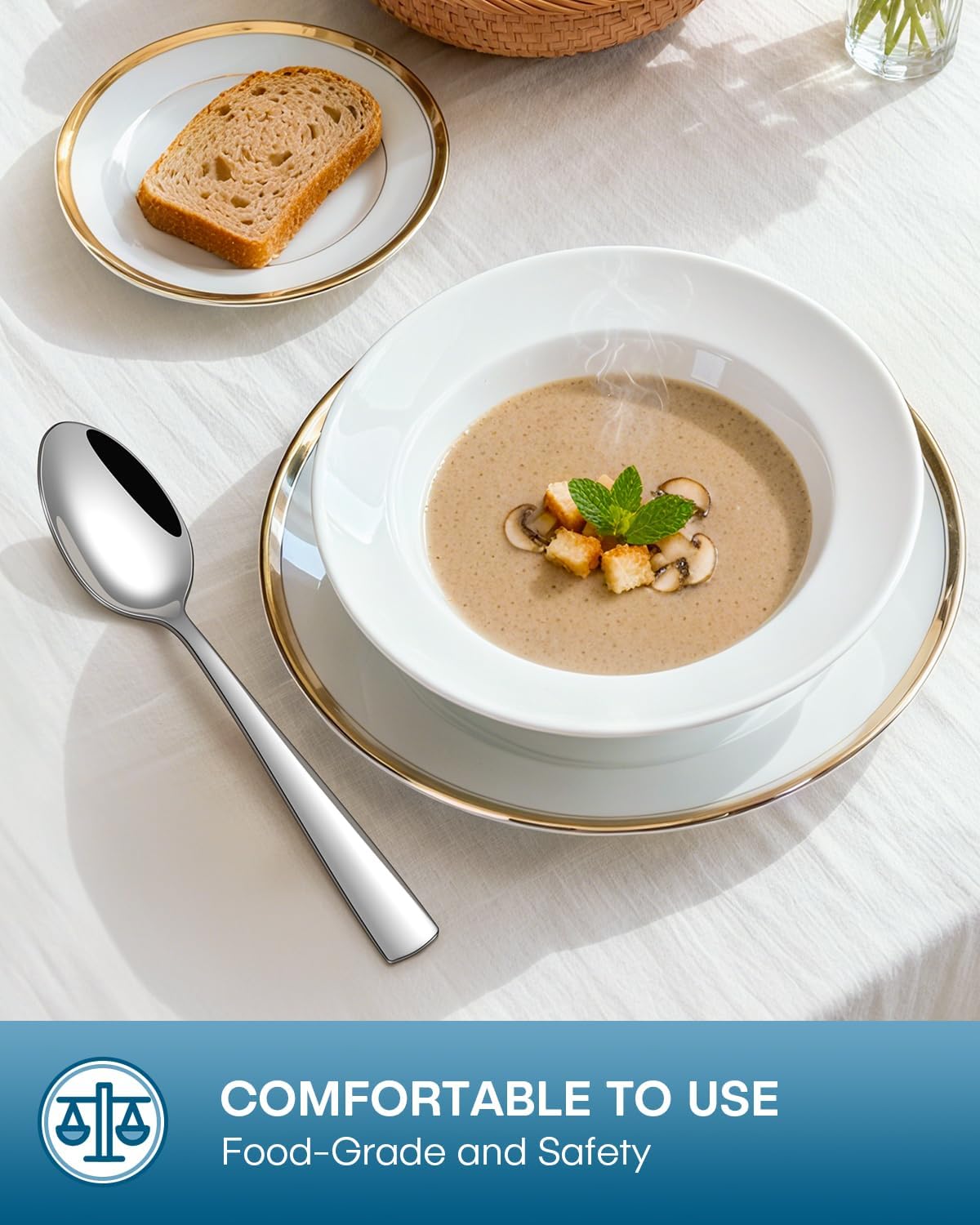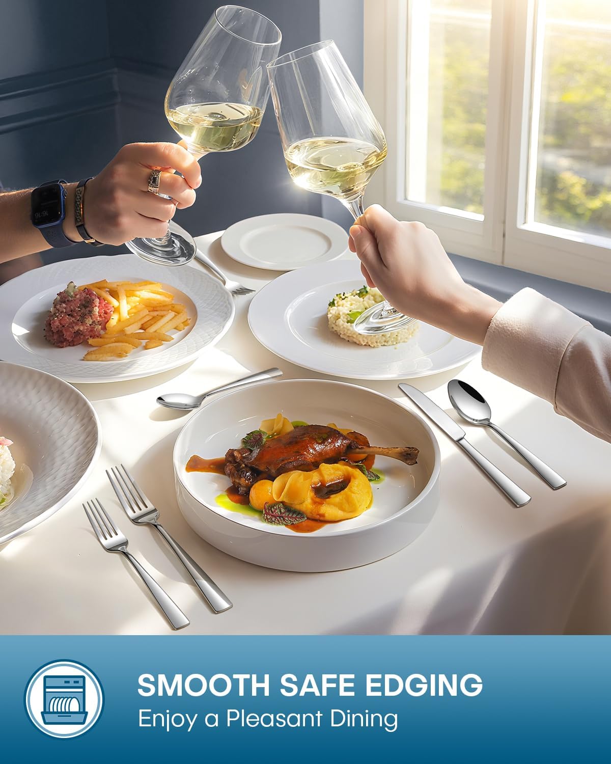 FOOD-GRADE STAINLESS STEEL: Crafted from premium durable stainless steel with a glossy mirror finish. Our flatware set is a perfect blend of practicality and health, allowing you to enjoy your food comfortably and easily. Meanwhile, its sturdiness ensures that it will not bend in daily use, providing for long-term use