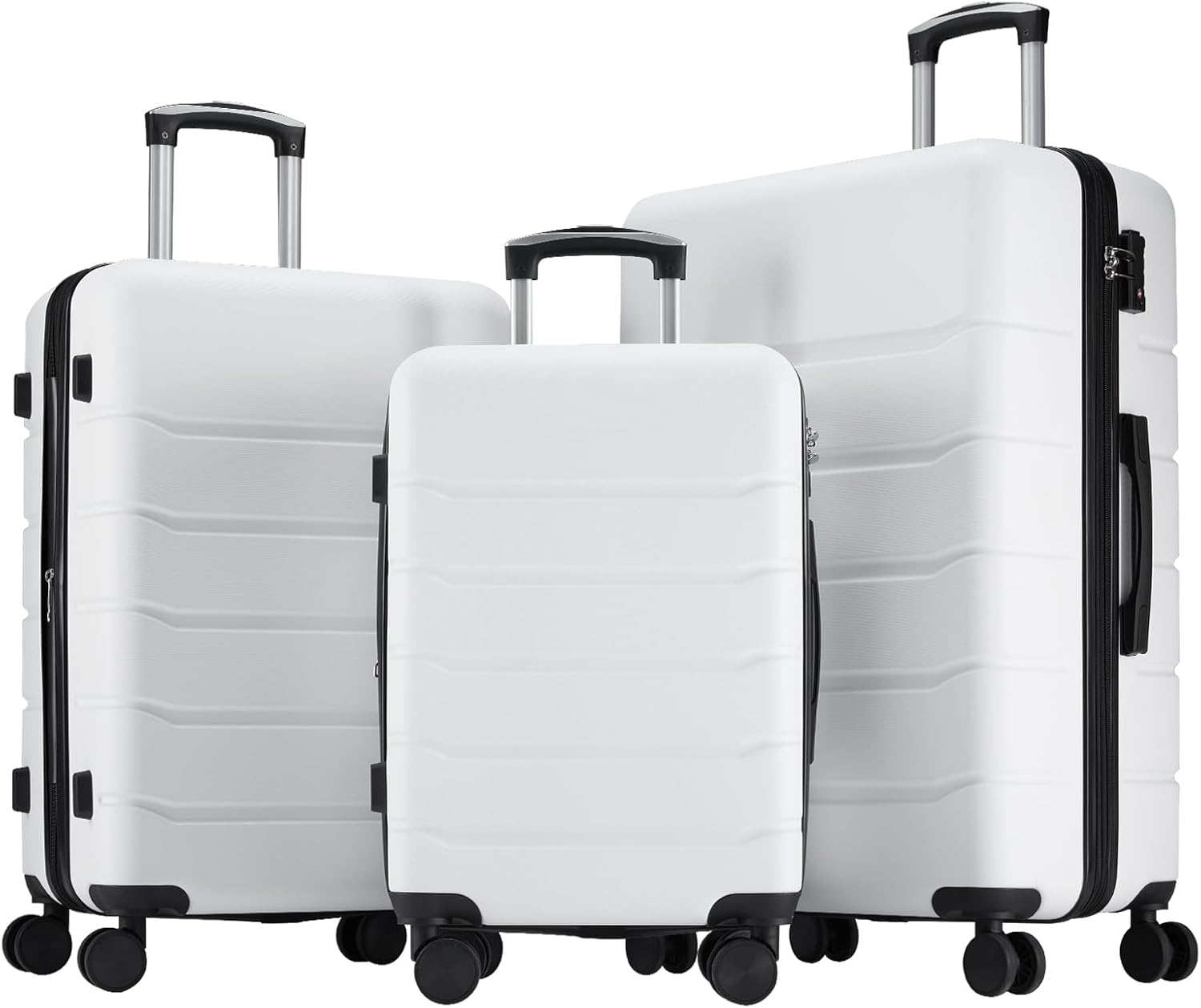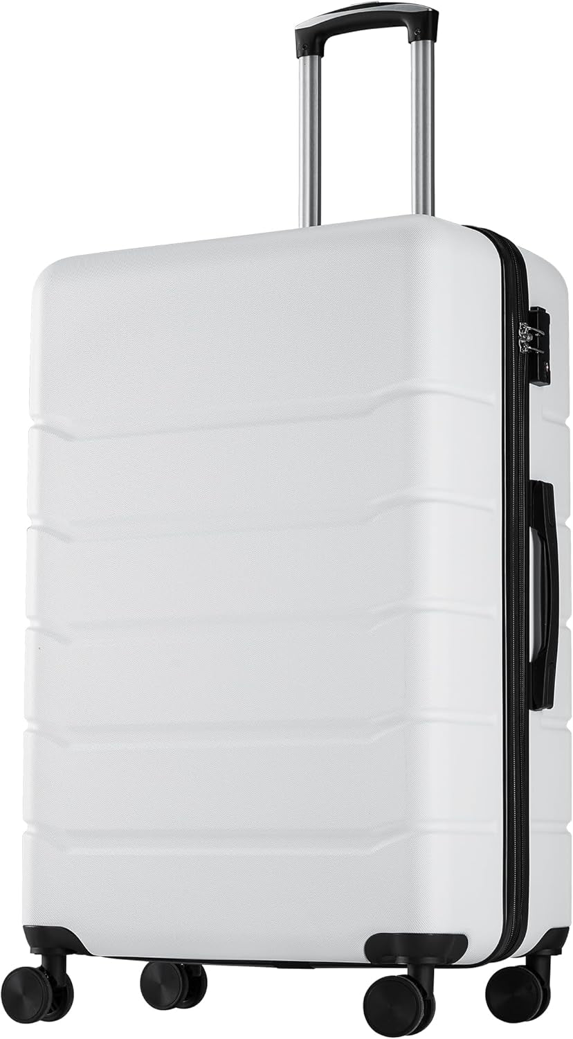SISXSO 3-Piece Luggage Set, 20/24/28 Inch Hardside Suitcases with Spinner Wheels, Lightweight ABS Hard Shell Travel Luggage, TSA Approved Lock, Expandable Carry-On & Checked Luggage–White