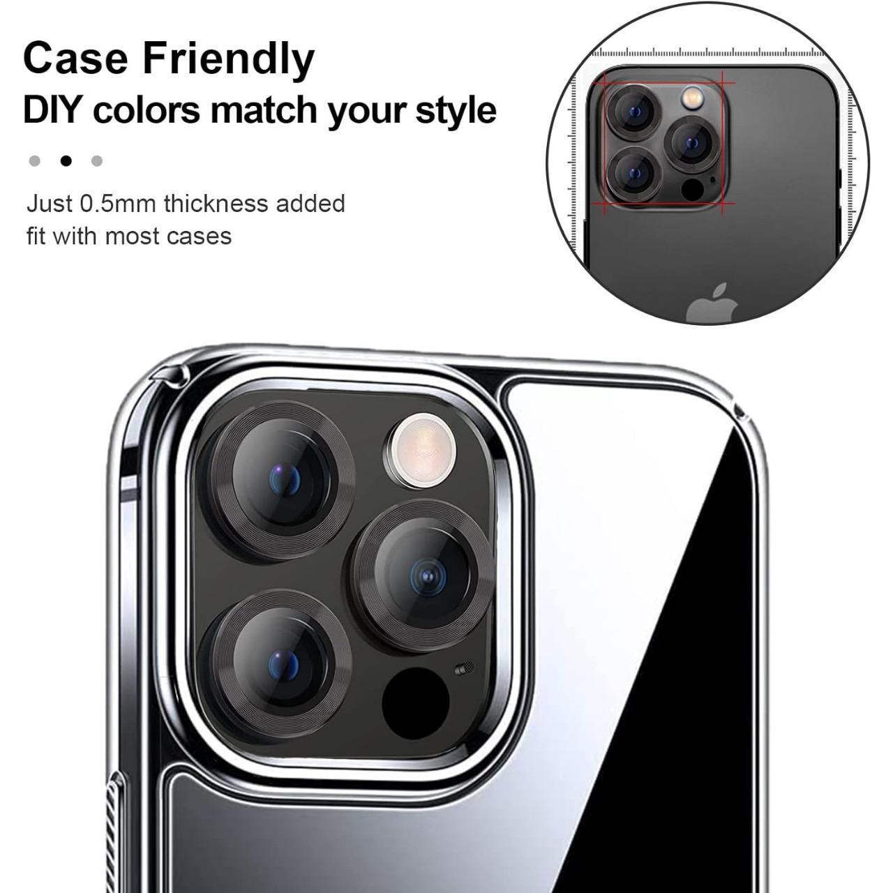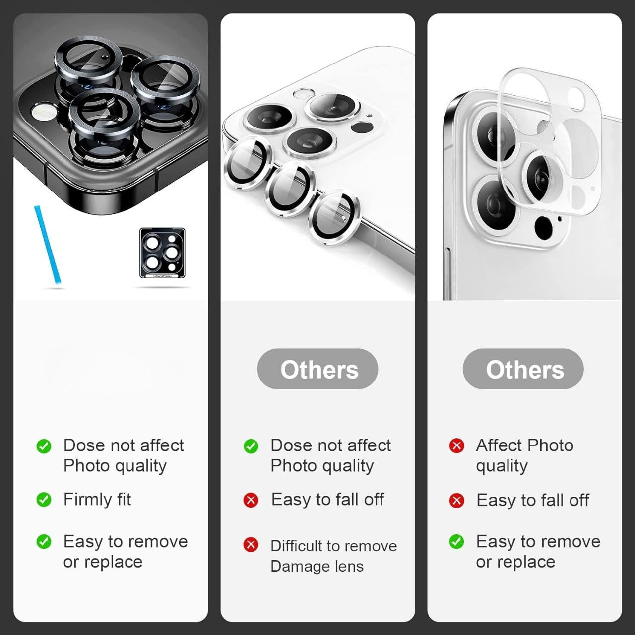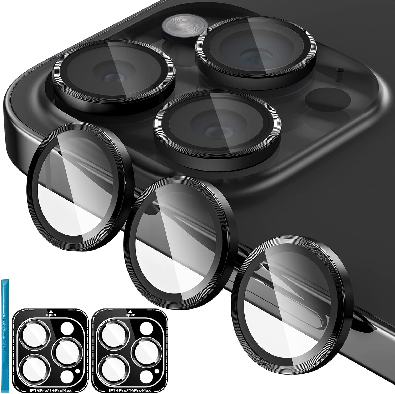 Pacote com 3x2 protetores de lente de câmera para 14 Pro Max para 14 Pro, capa protetora de tela de vidro temperado 9H, anel individual de metal de fácil instalação