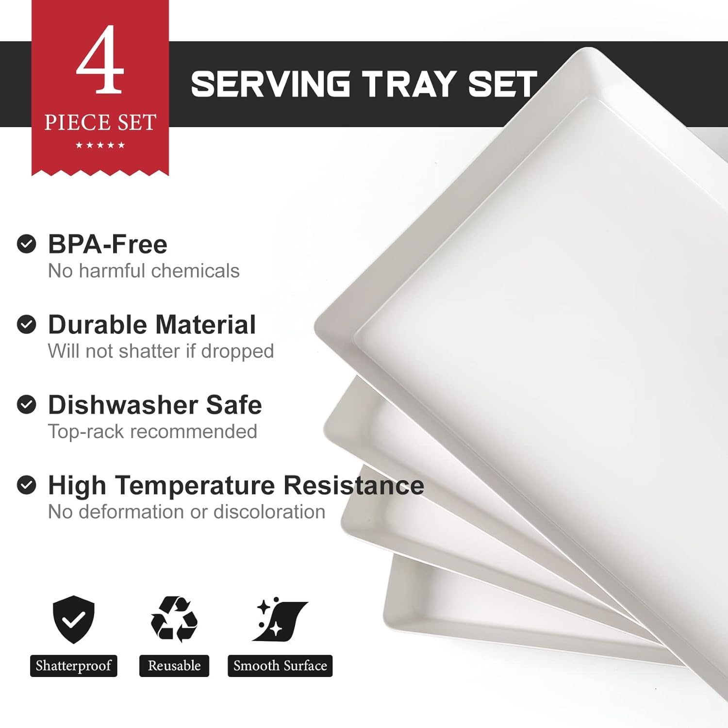 Pacote com 4 bandejas grandes brancas de 16" x 11" - Bandejas de plástico reutilizáveis para biscoitos, aperitivos, charcutaria, lanches, sobremesas, exposição de alimentos para festas - Bandeja de bancada de cozinha empilhável, sem BPA