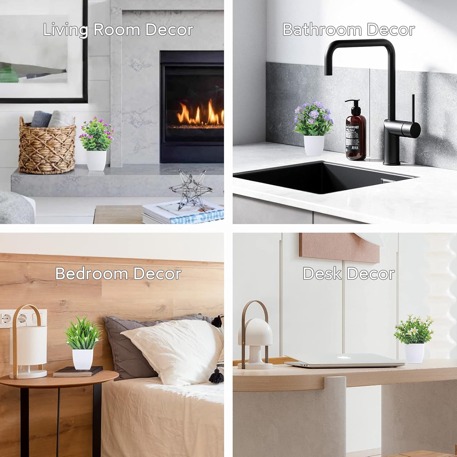 SISXSO 4 Pack Small Fake Plants Mini Artificial Faux Plants Indoor with Flowers Spring Decorations for Home Room Farmhouse Desk House Bathroom Decor