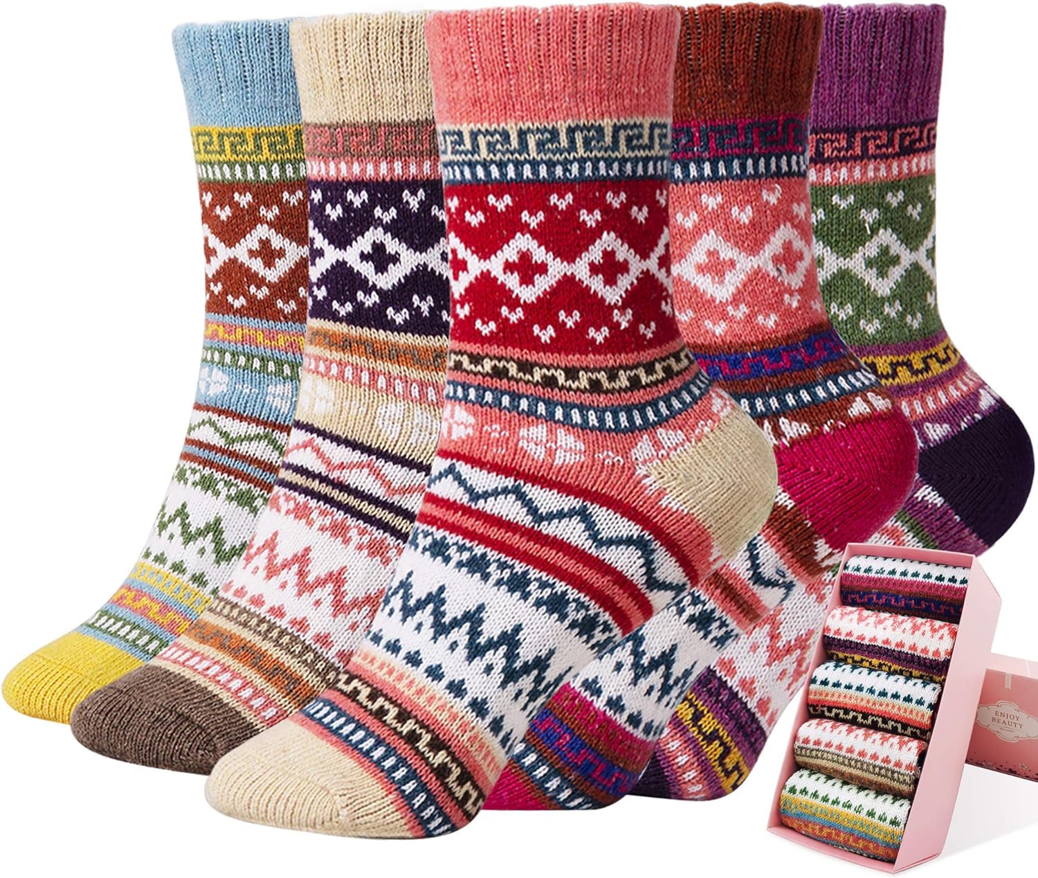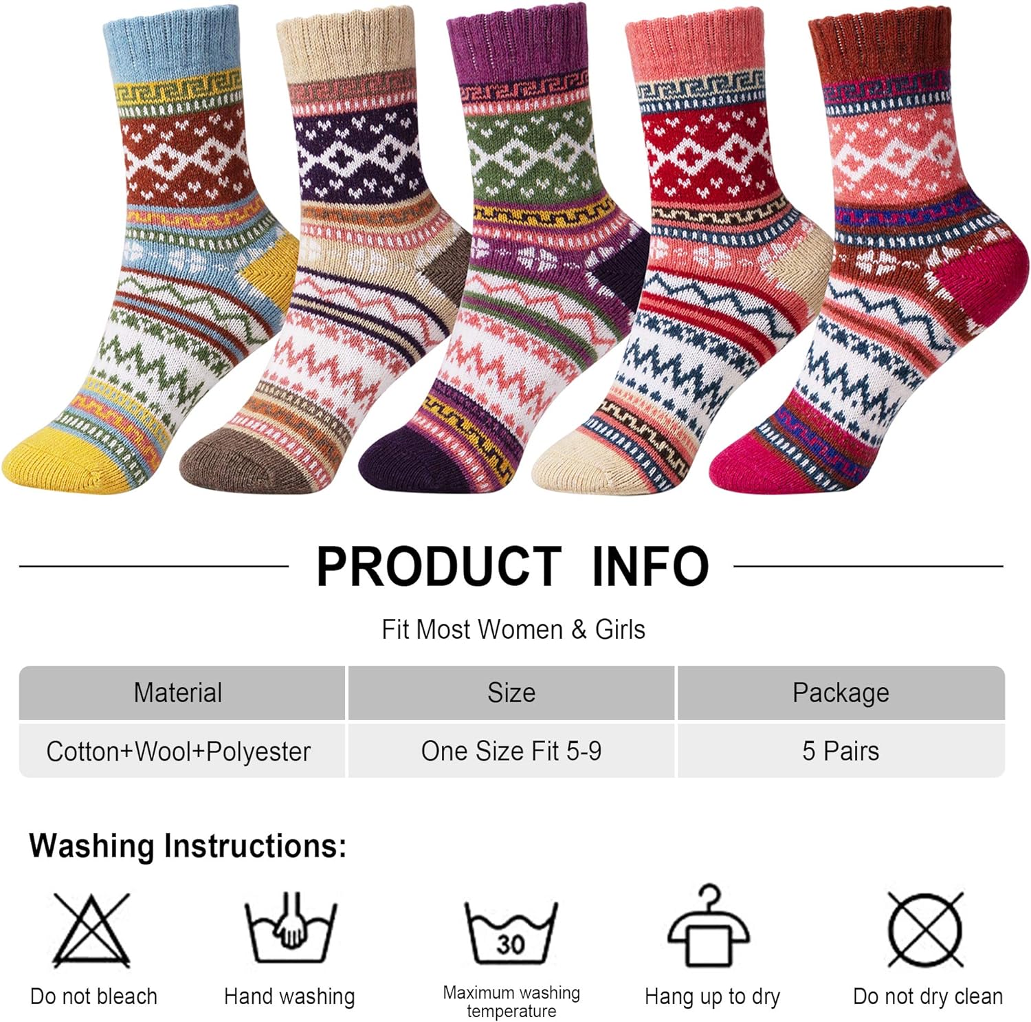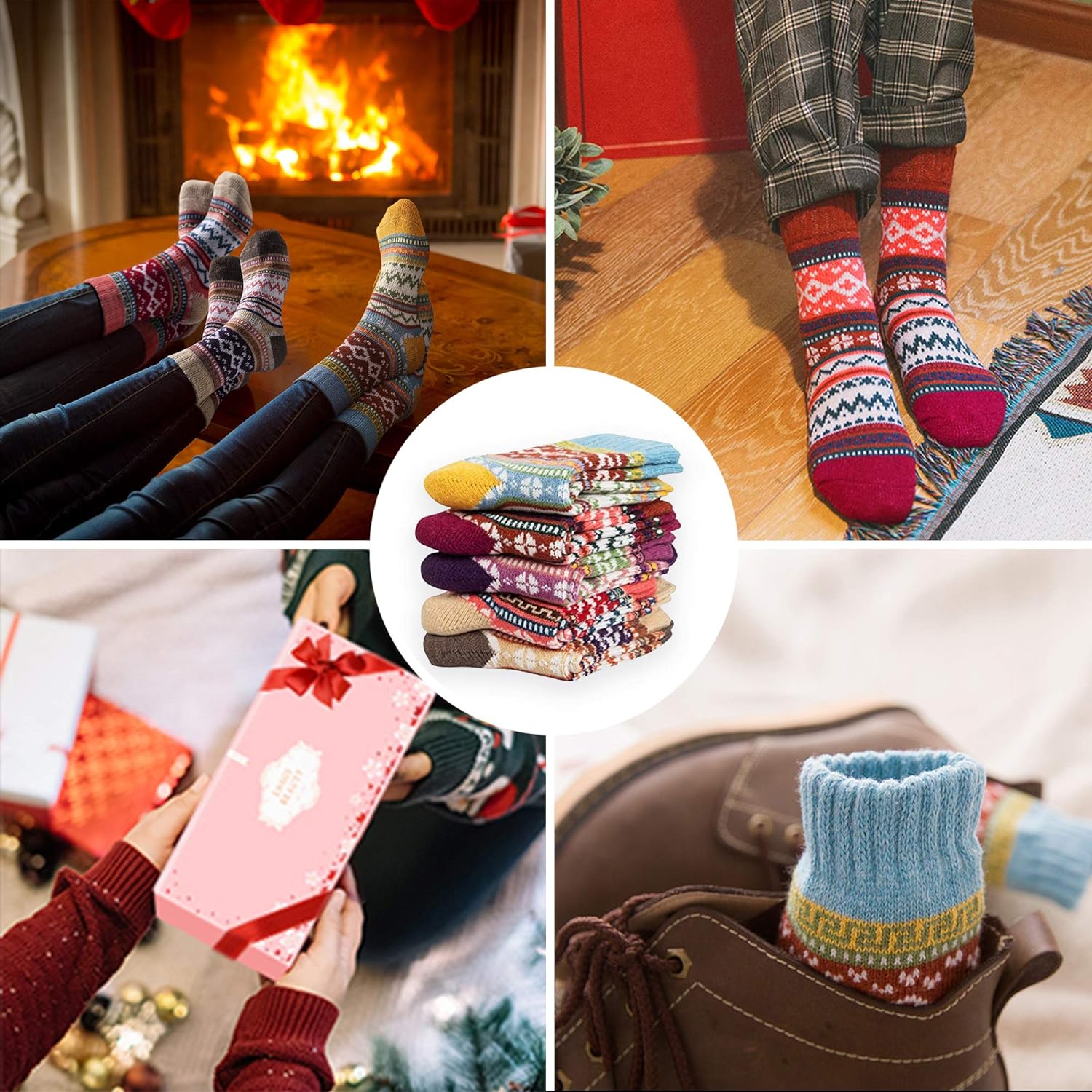 5 pares de meias femininas meias de algodão quentes meias grossas de malha vintage meias casuais de inverno