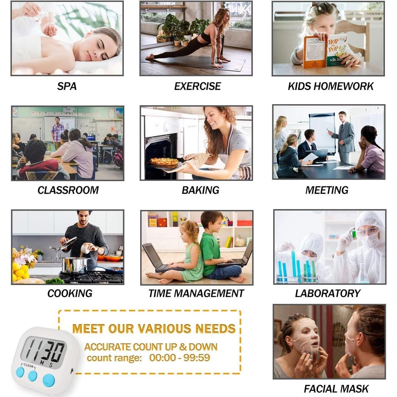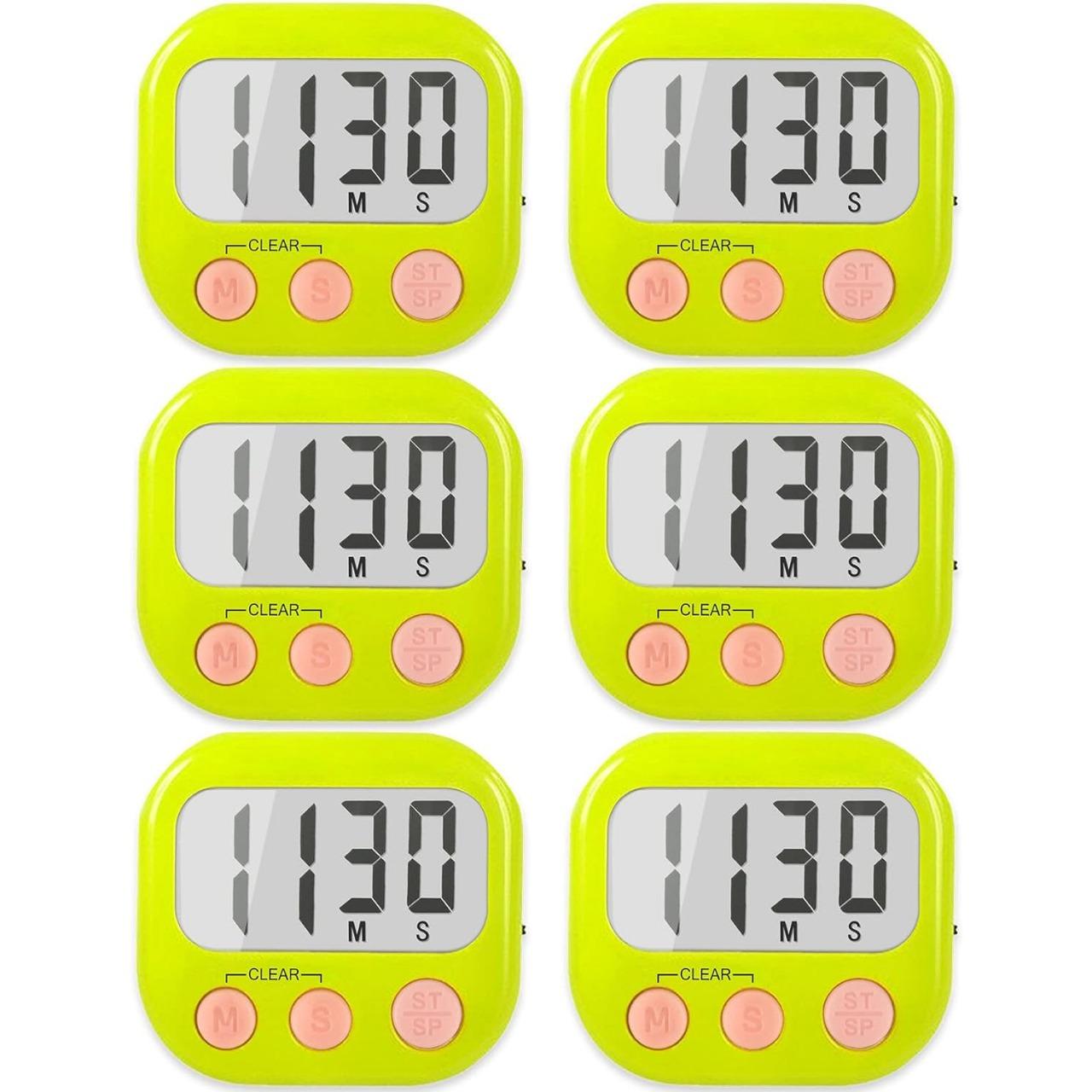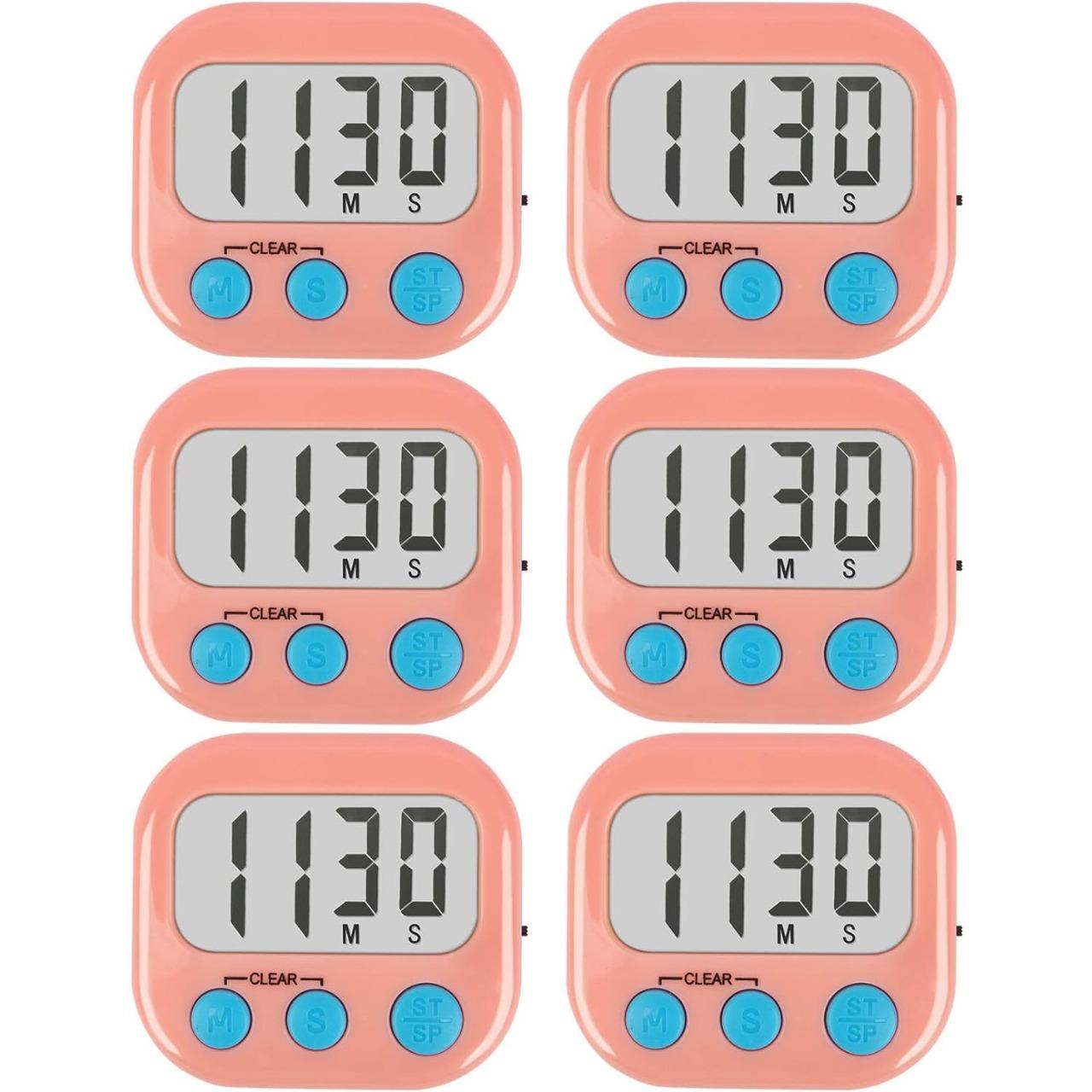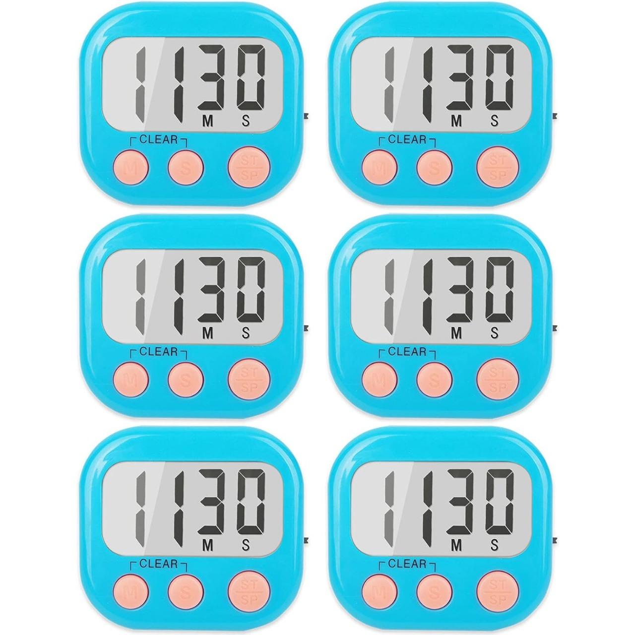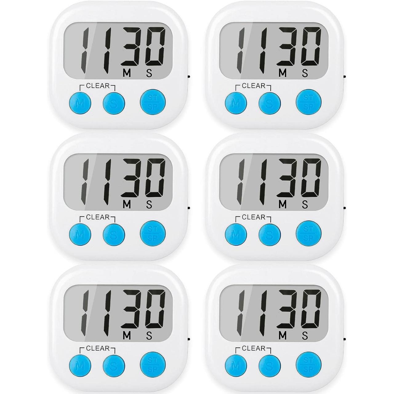 Pacote com 6 temporizadores digitais de cozinha para cozinhar dígitos grandes, alarme alto, suporte magnético, temporizadores de cozimento para assar, branco