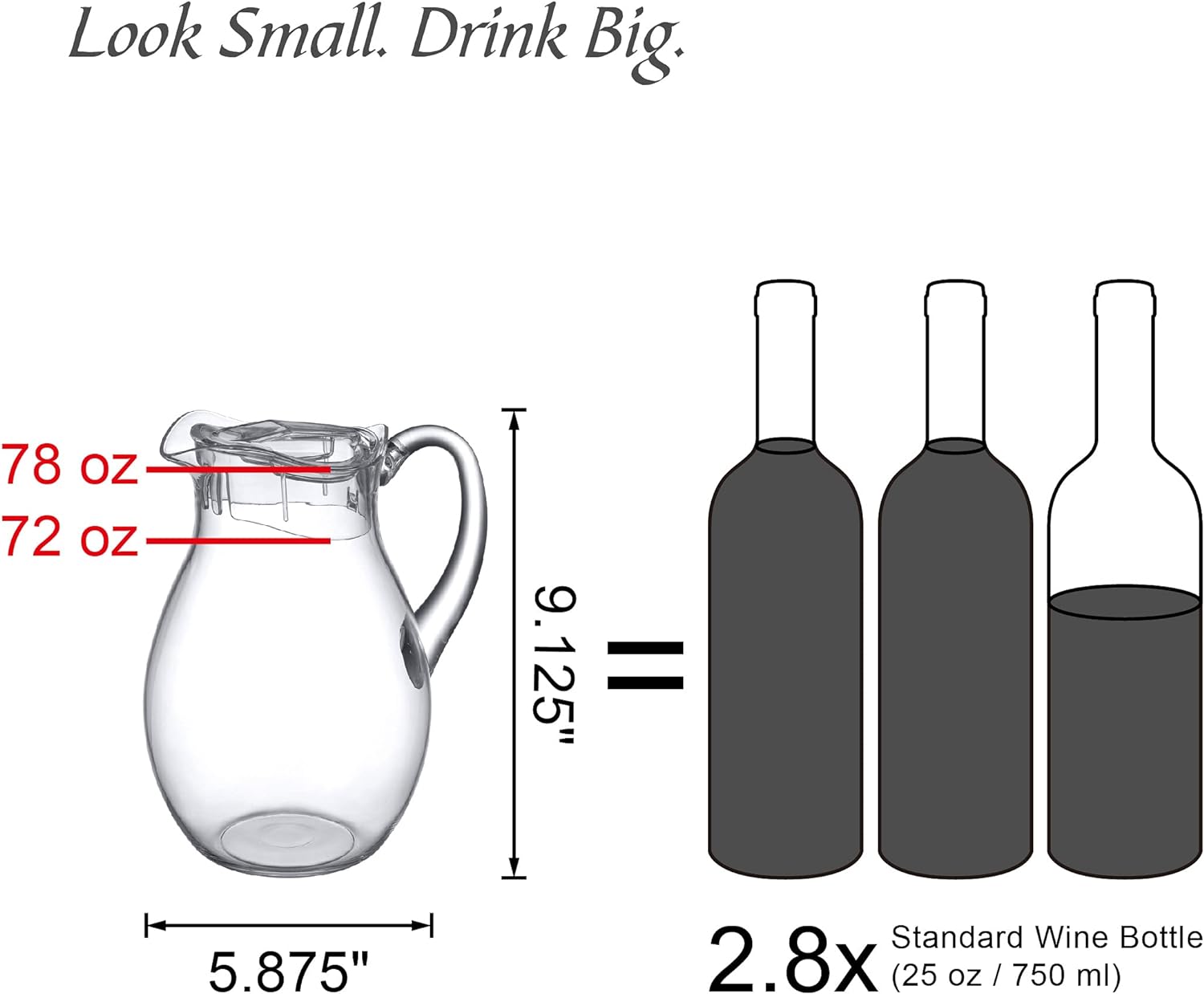 Bubbly - Jarra de acrílico (72 oz), jarra de água de plástico transparente com tampa, jarra de geladeira, sem BPA, à prova de quebra, ótima para chá gelado, sangria, limonada, suco, leite e muito mais