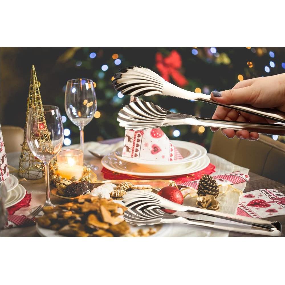 Pinça para servir salada de bufê, utensílios para servir salada e churrasco de 12 polegadas, conjunto de 2 (aço inoxidável) (aço inoxidável)