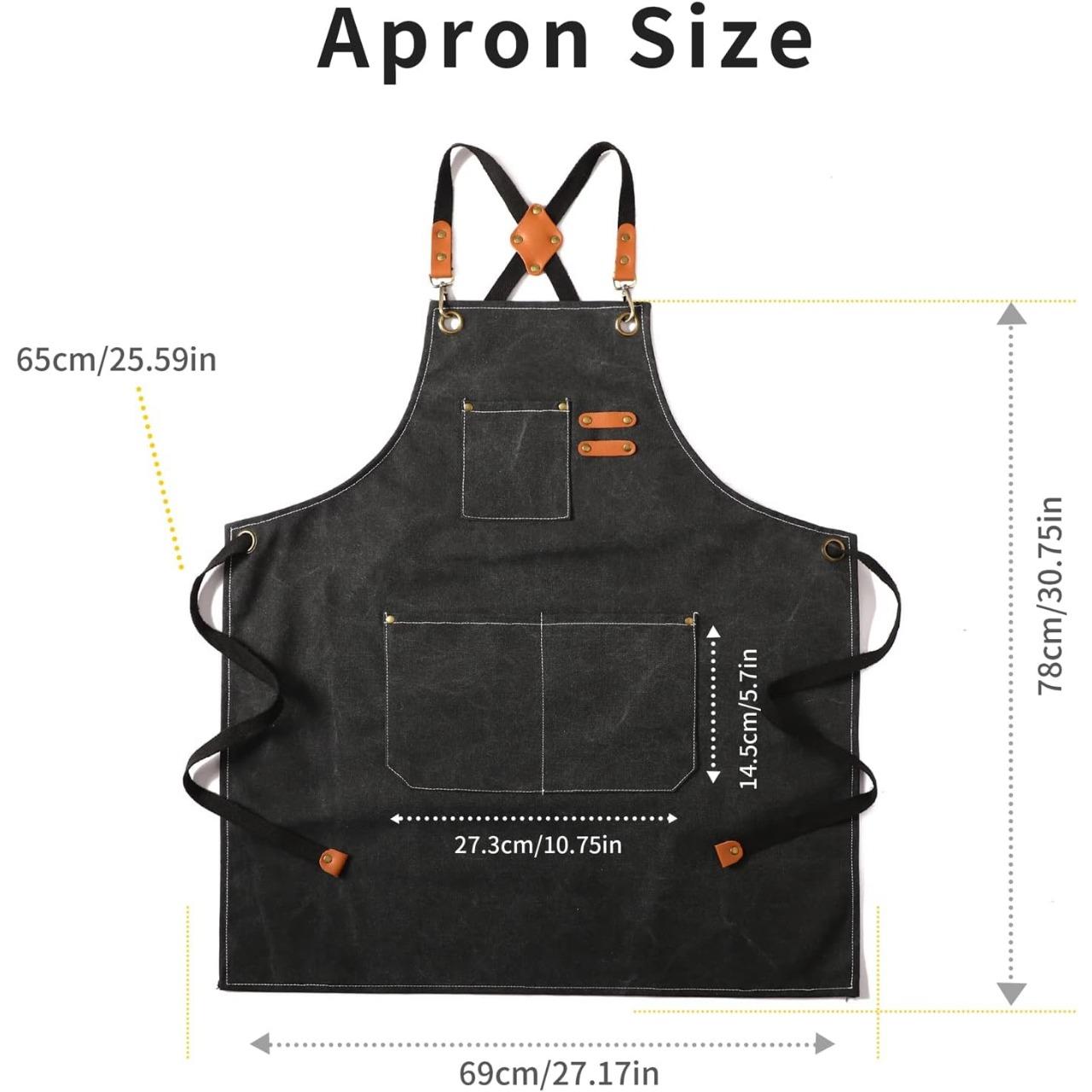 Avental de algodão de chef com costas cruzadas de lona para homens e mulheres com bolsos grandes