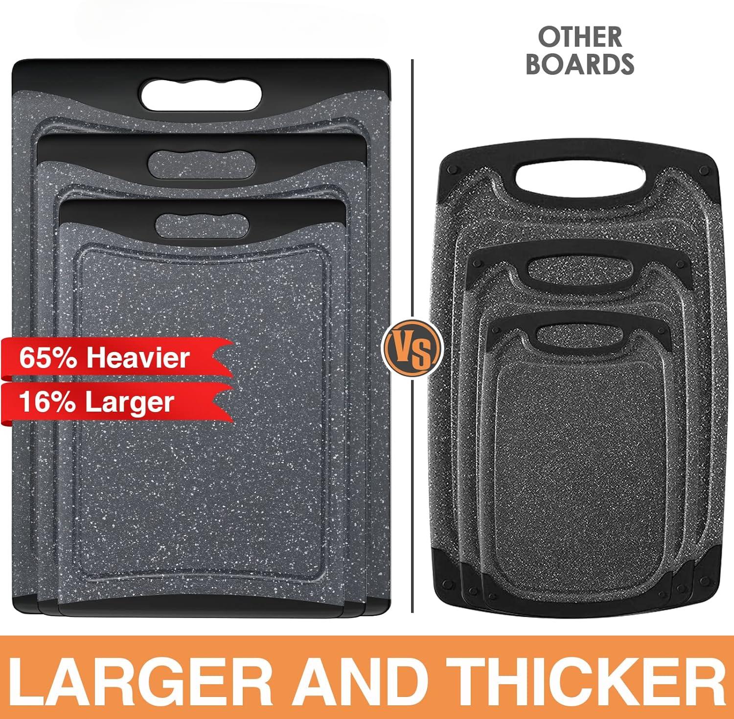 Tábuas de corte extragrandes, tábuas de corte de plástico para cozinha (conjunto de 3), cinza escuro