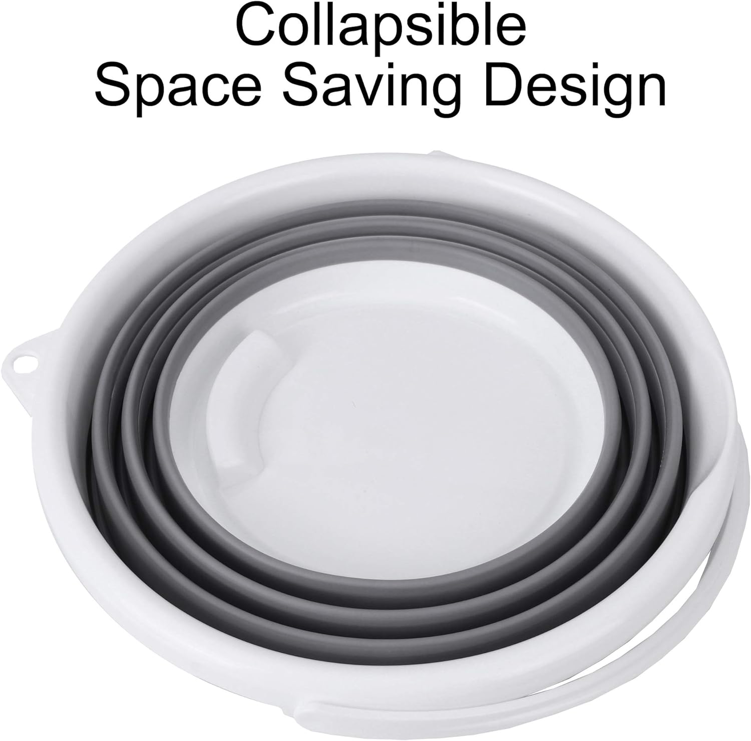 Balde dobrável para interior e exterior com alça, 10 litros, 2,6 galões, cinza e branco