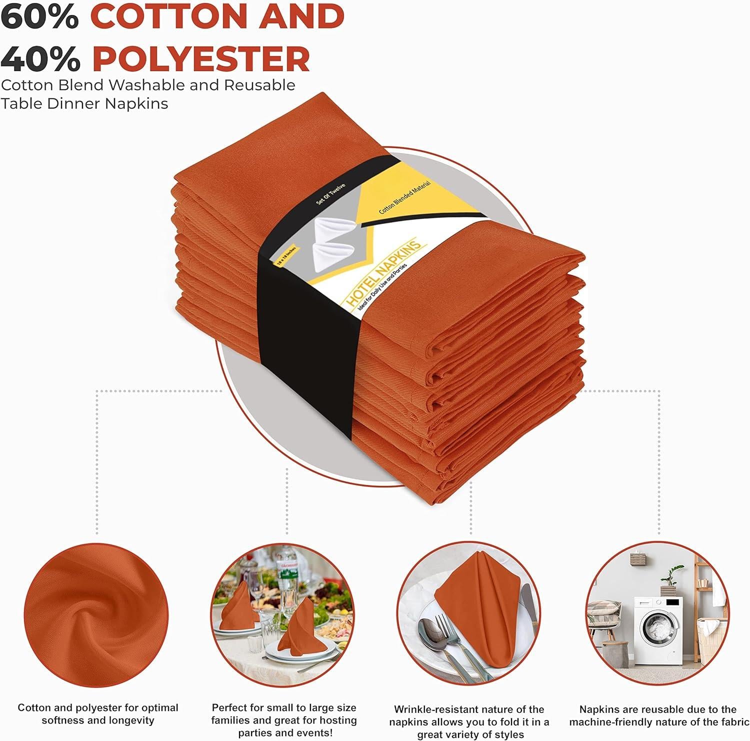 Guardanapos de pano laranja de cozinha [pacote com 12, 18 x 18 polegadas] Guardanapos de mesa laváveis e reutilizáveis de mistura de algodão para hotel, almoço, restaurante, casamentos, eventos e festas