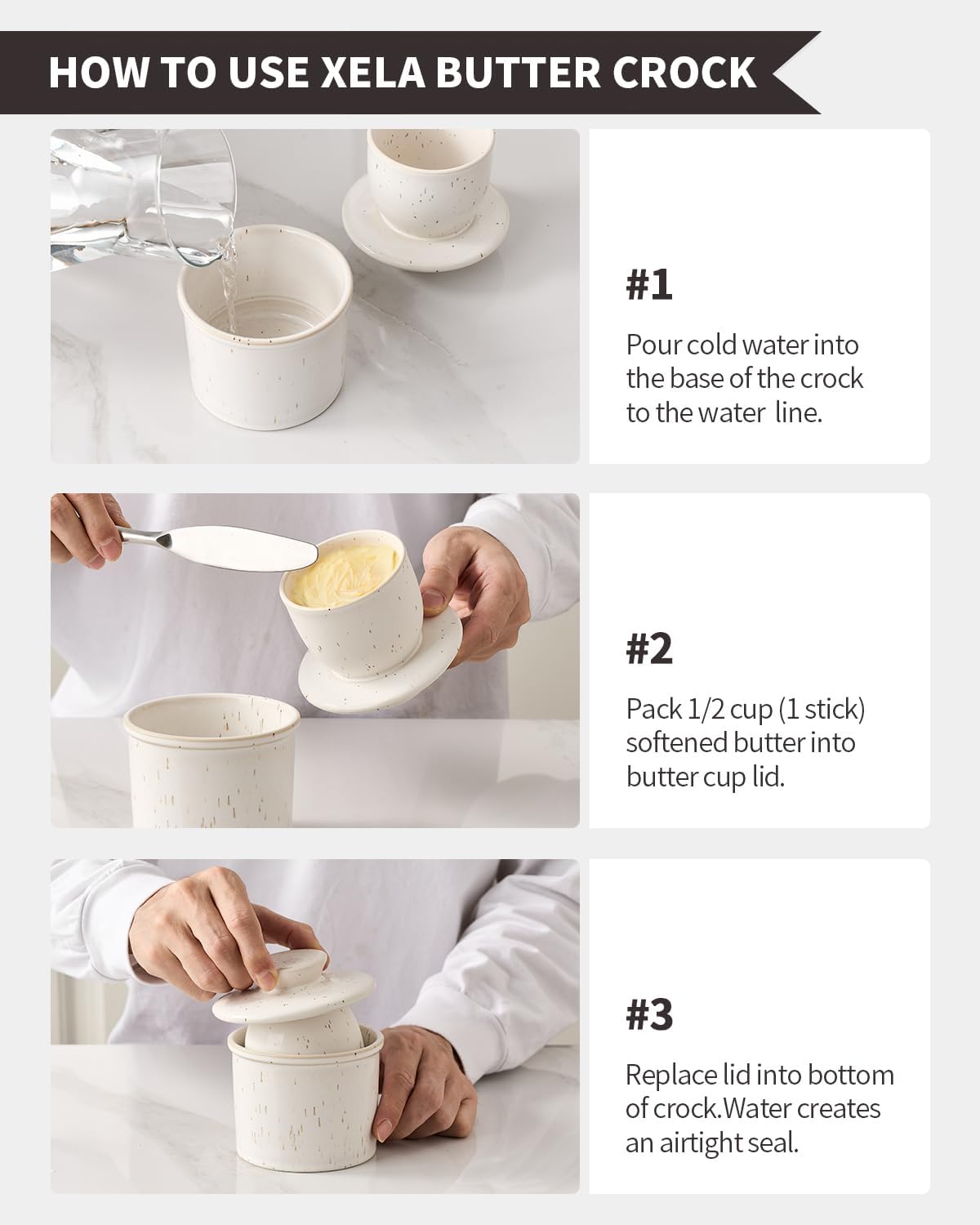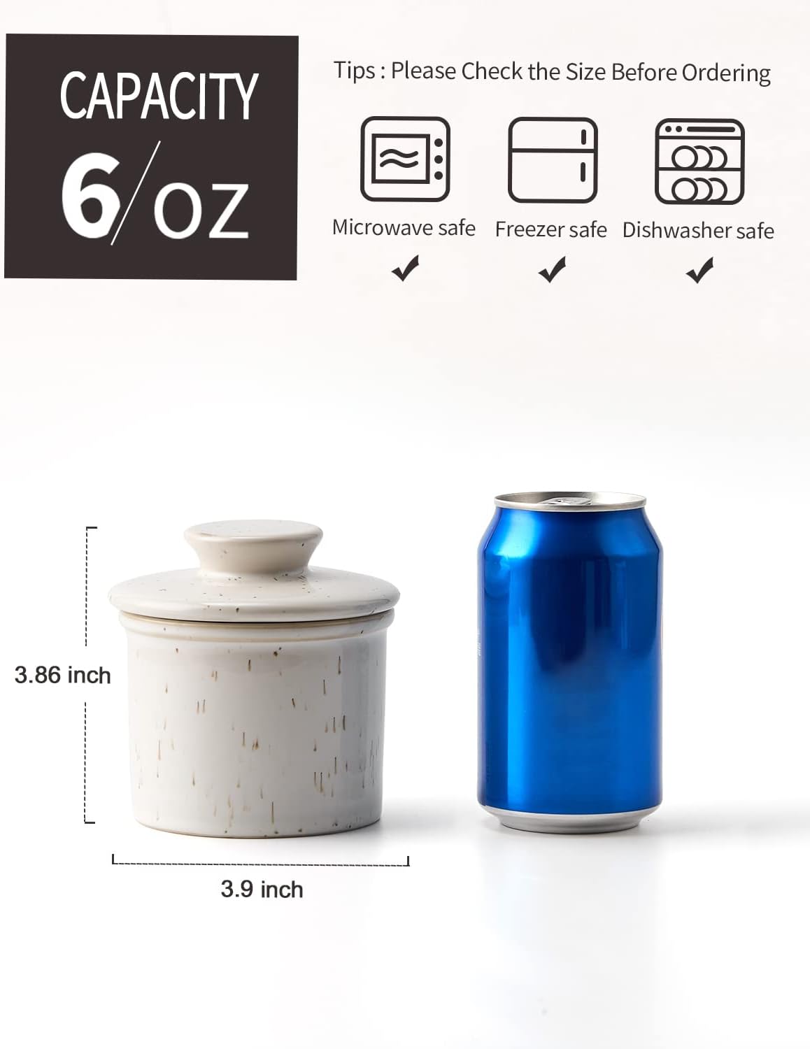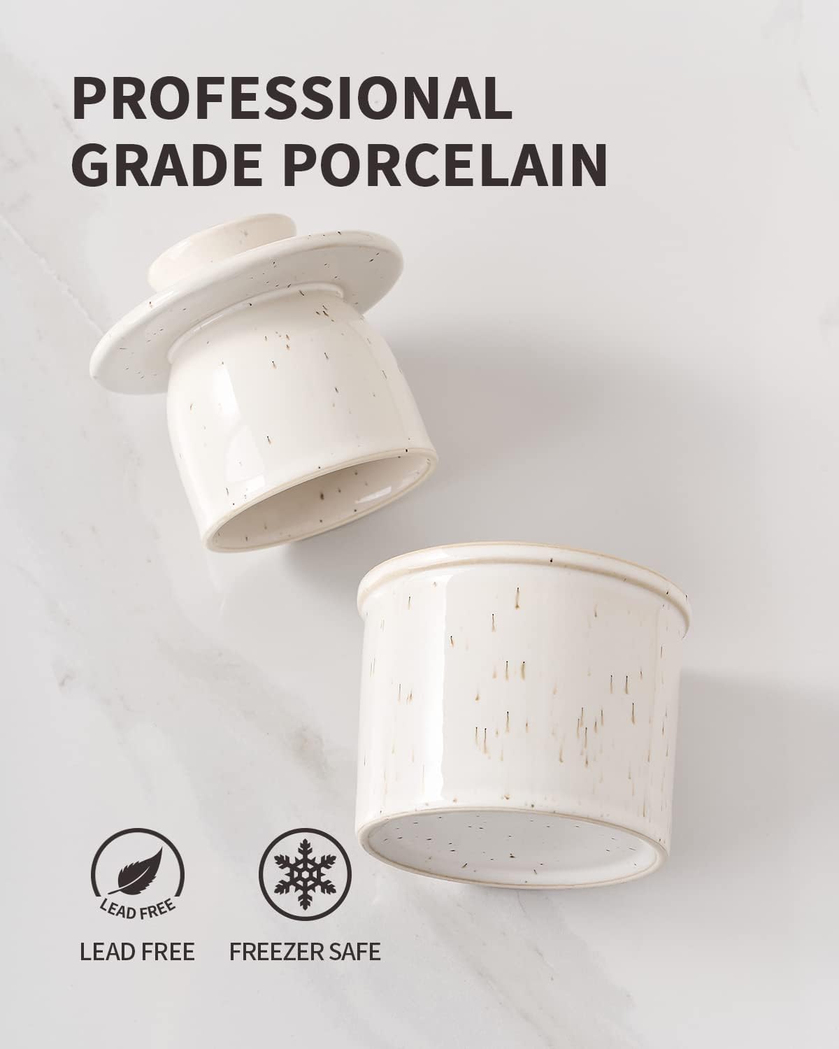 Pote de manteiga de porcelana, pote de manteiga francês para balcão, pote de manteiga com linha de água para manteiga fresca para barrar - branco salpicado