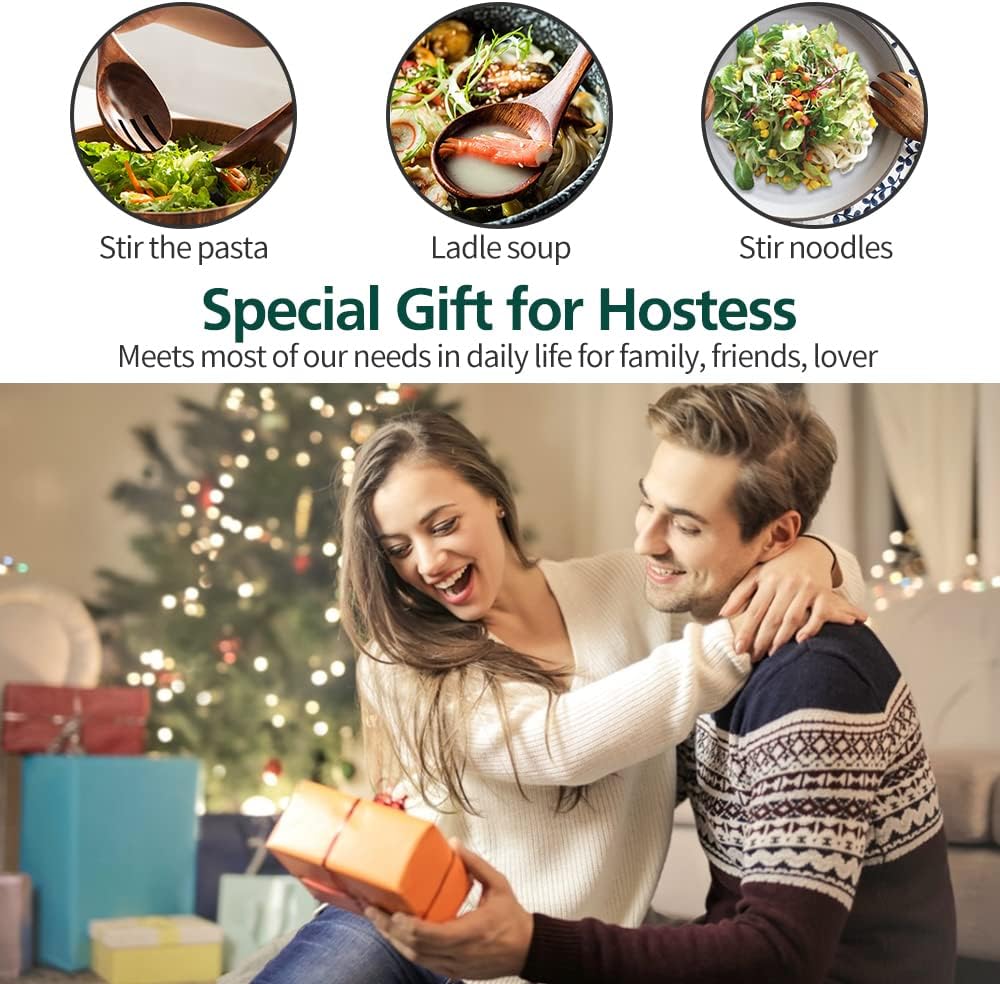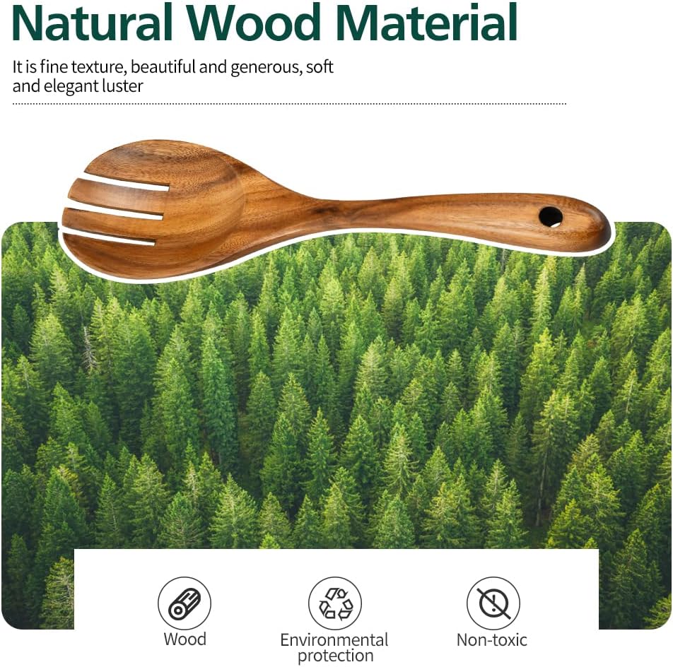 Talheres para salada, pinças de madeira para salada, conjunto de colher e garfo para salada de 10,2 pol., conjunto de talheres para salada com cabo longo para misturar, jogar e cozinhar (conjunto de colher e garfo para salada)