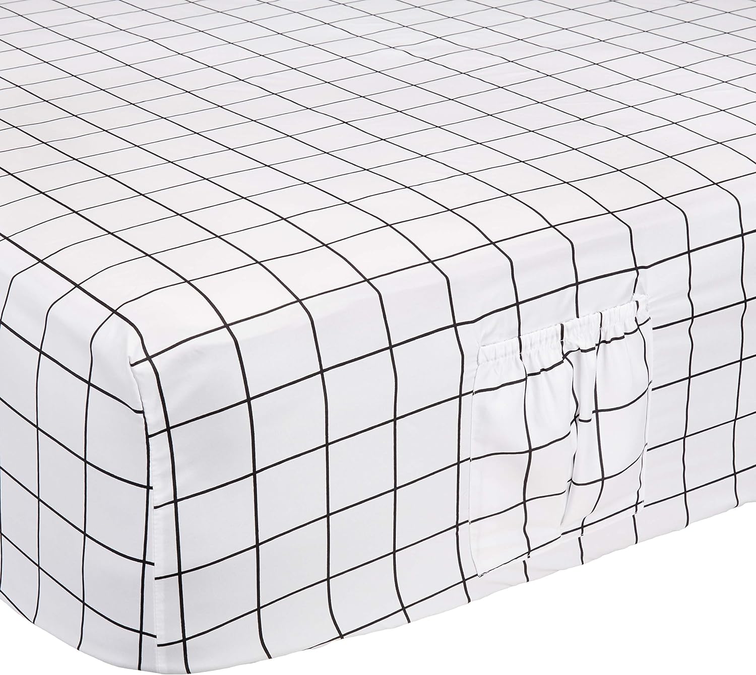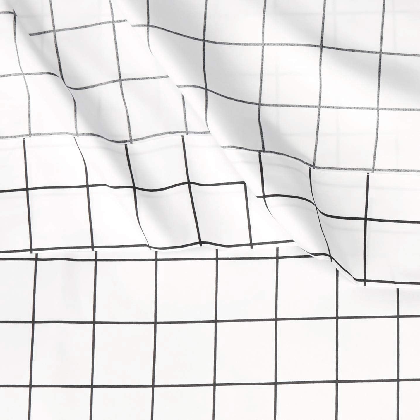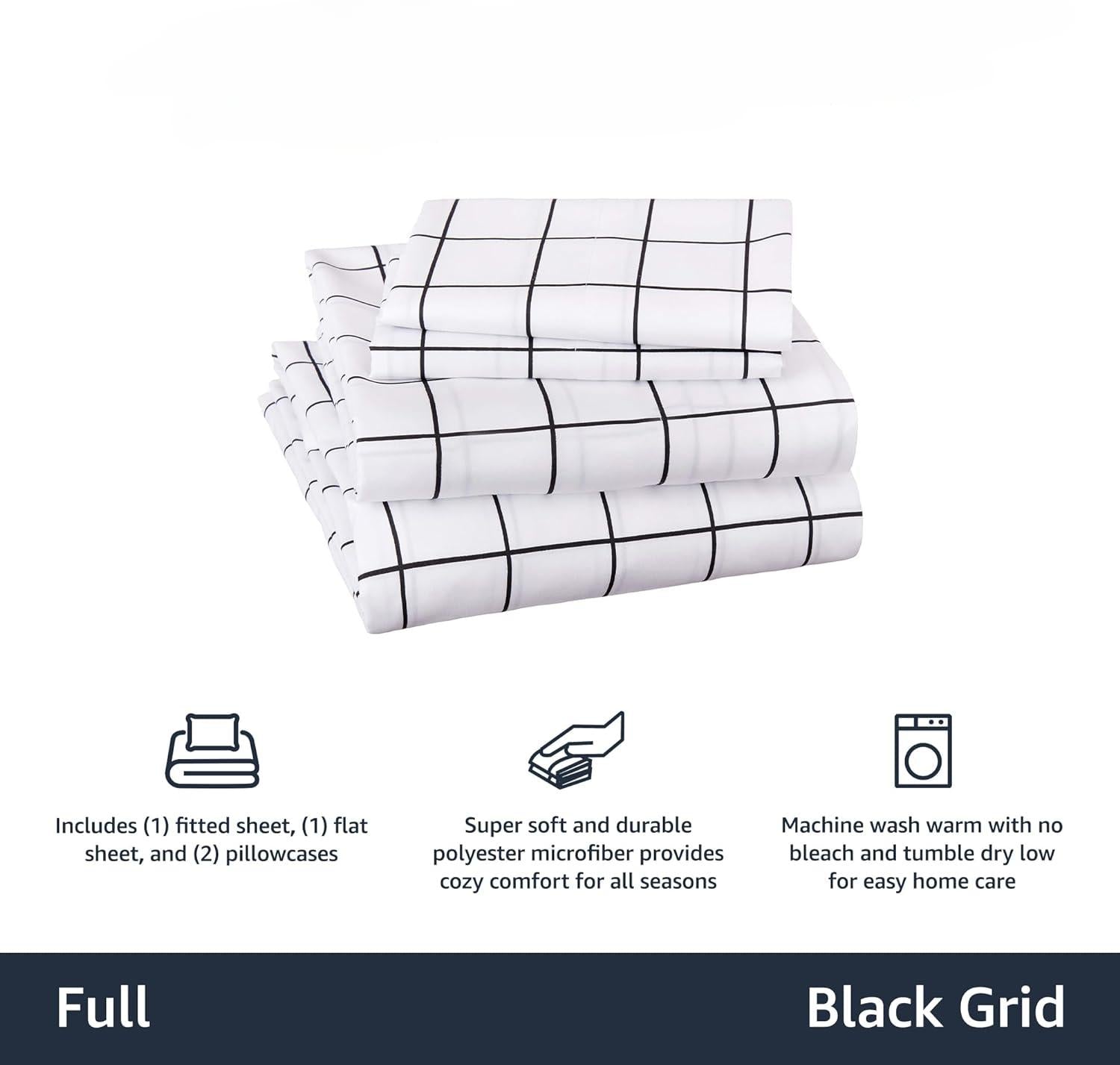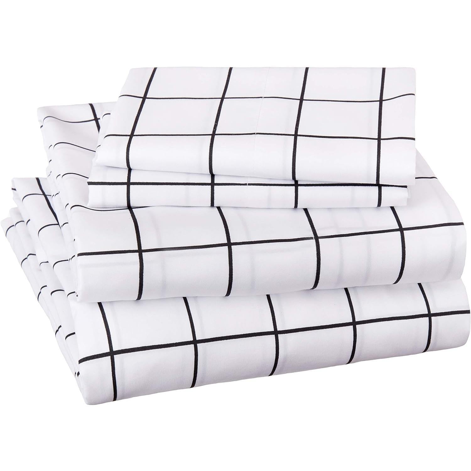 Conjunto de lençóis de cama de microfibra macia de 4 peças com bolsos laterais elásticos, completo, grade preta, geométrico