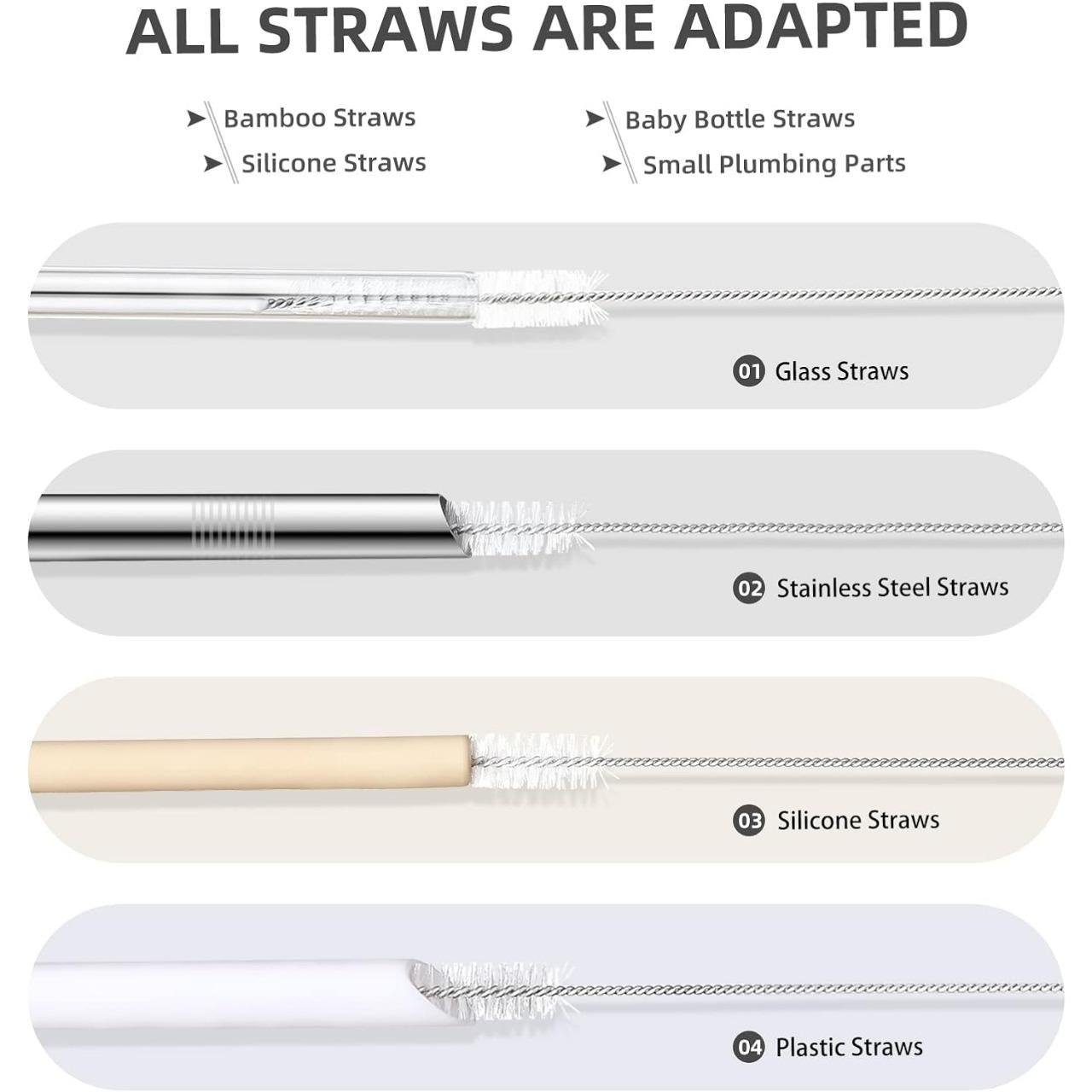 Conjunto de escovas para limpeza de canudos, escova longa de limpeza de 8 peças para canudos em copos, garrafas de água, copos com canudinho e canos, tubos ou alimentadores de beija-flores