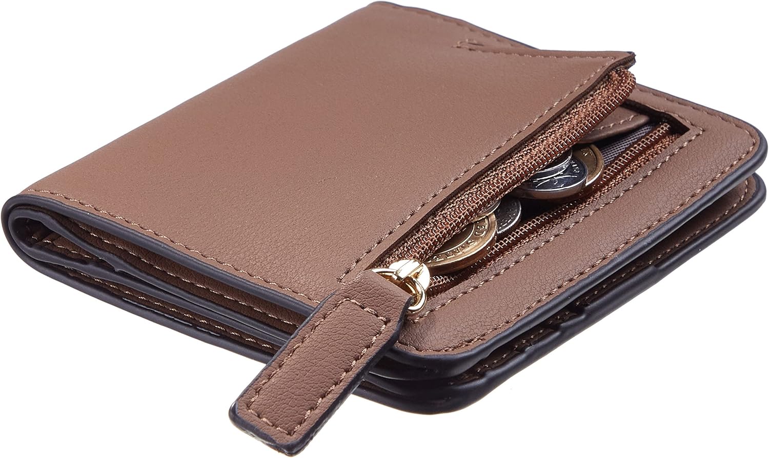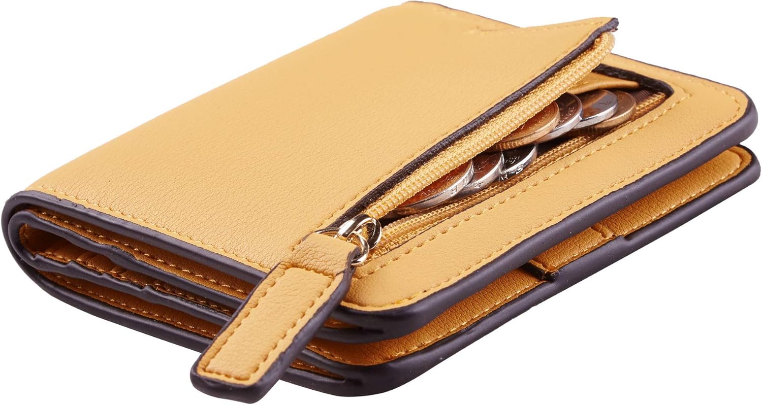 SISXSO Women’s Small Slim Leather Wallet with RFID Protection, Compact Bifold Mini Purse with Clear ID Window