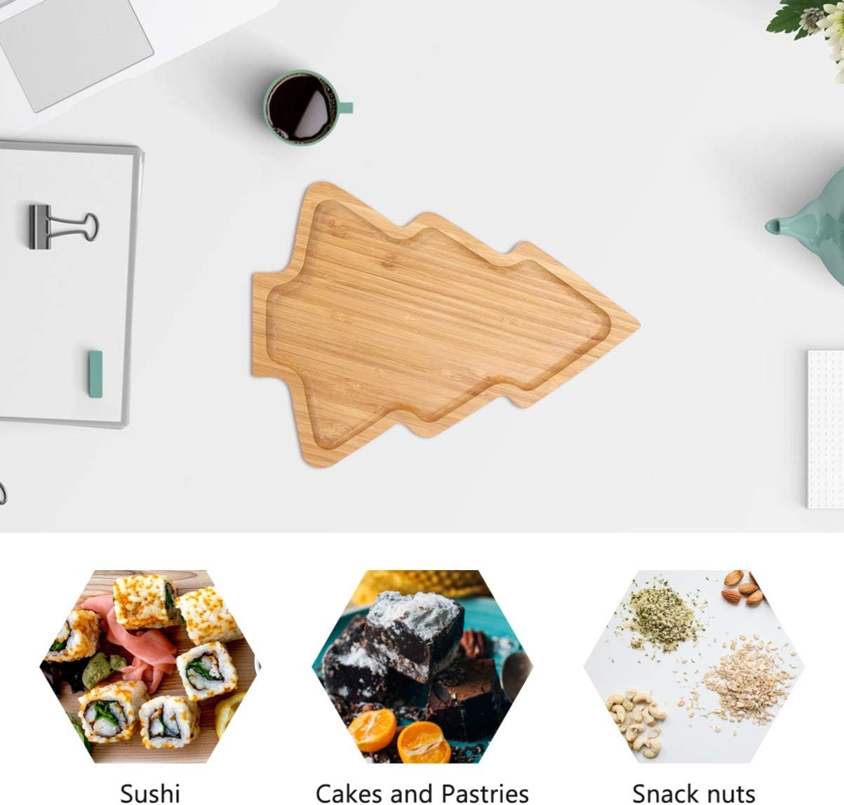 Bandeja de aperitivo de madeira em forma de árvore de natal bandeja de servir sushi prato de sashimi japonês lanche sobremesa prato de doces para restaurante casa (11"x7,86")